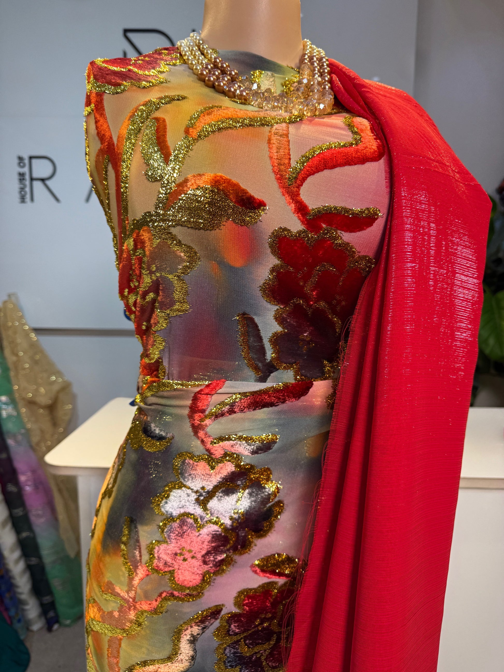 Our Nawaal Collection II features stunning, vibrant colors that are perfect for any occasion offering a radiant touch to your wardrobe. Each dirac can be styled in multiple ways and comes with a matching chiffon shawl (shalmad) and custom-made underskirt (gogarad) that complement its intricate details. Every piece is hand-designed with rhinestones and shimmer, adding the perfect sparkle and shine.