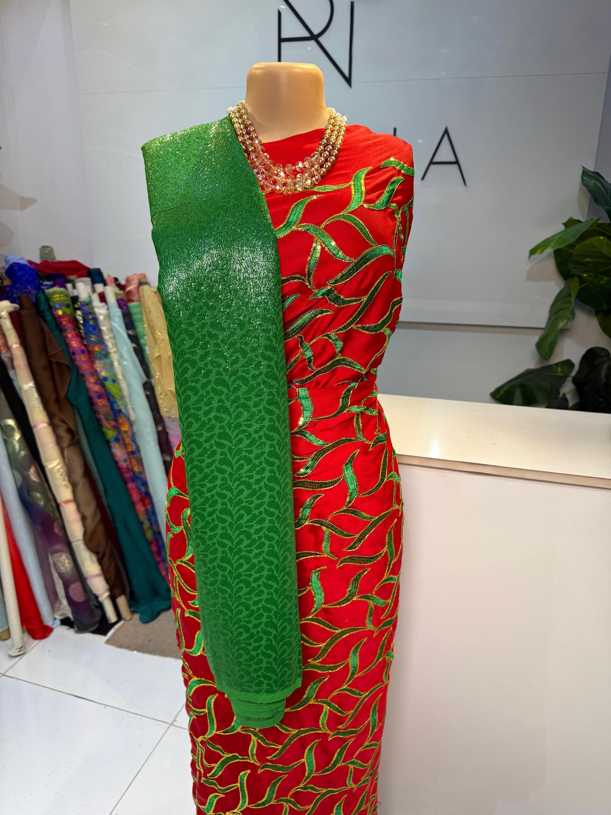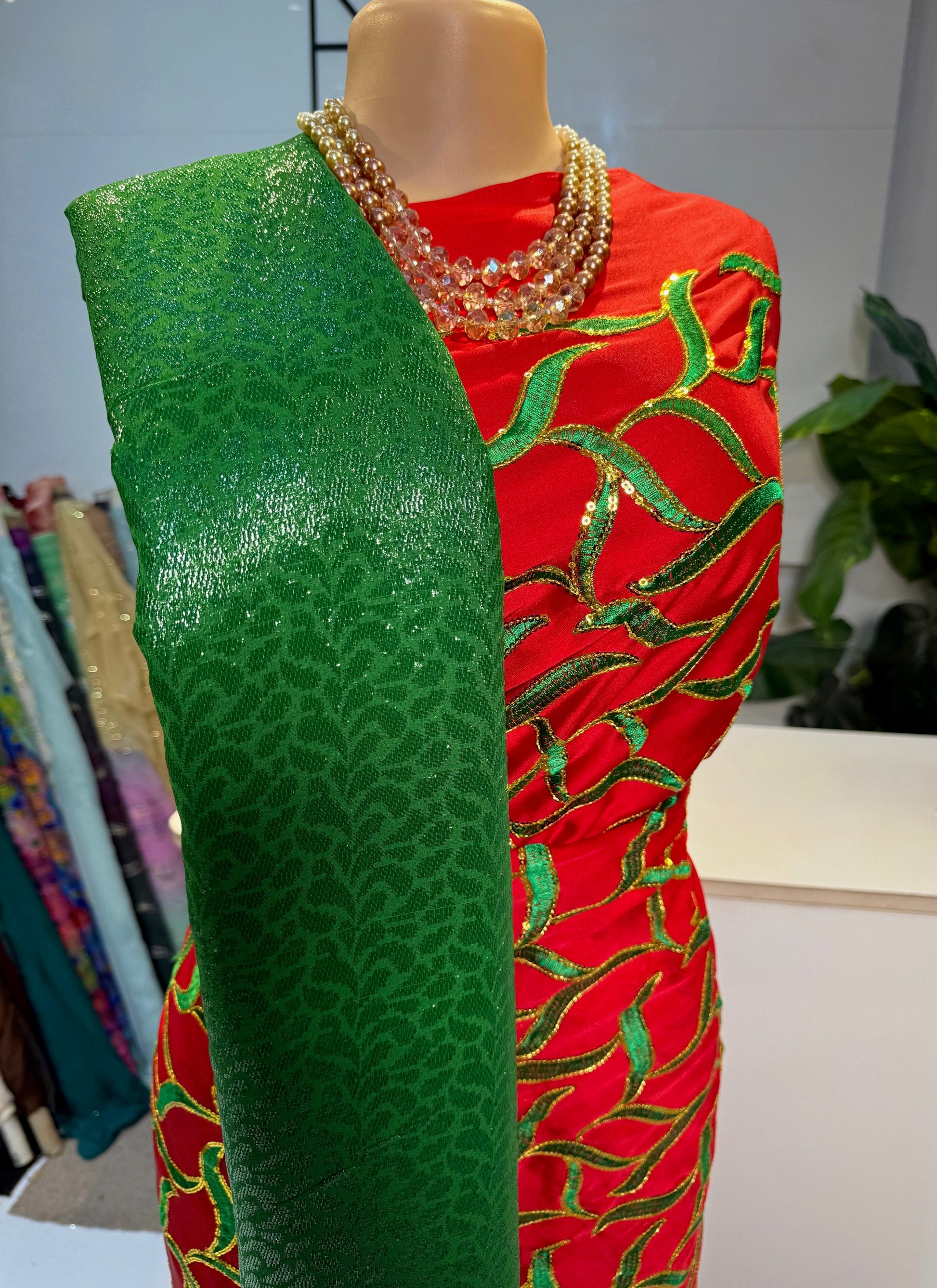 Our Nawaal Collection II features stunning, vibrant colors that are perfect for any occasion offering a radiant touch to your wardrobe. Each dirac can be styled in multiple ways and comes with a matching chiffon shawl (shalmad) and custom-made underskirt (gogarad) that complement its intricate details. Every piece is hand-designed with rhinestones and shimmer, adding the perfect sparkle and shine.