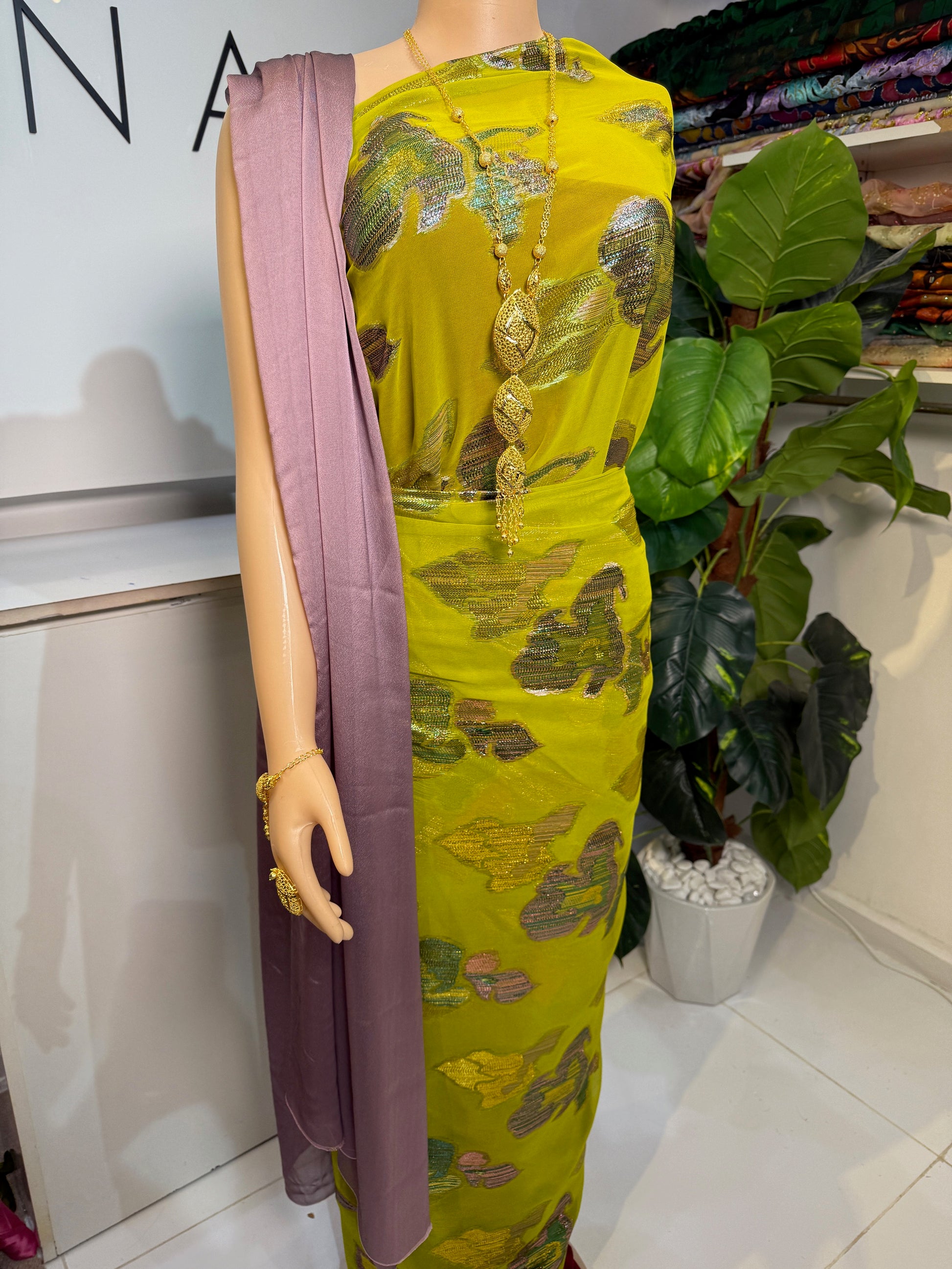 Our Nawaal Collection II features stunning, vibrant colors that are perfect for any occasion offering a radiant touch to your wardrobe. Each dirac can be styled in multiple ways and comes with a matching chiffon shawl (shalmad) and custom-made underskirt (gogarad) that complement its intricate details. Every piece is hand-designed with rhinestones and shimmer, adding the perfect sparkle and shine.