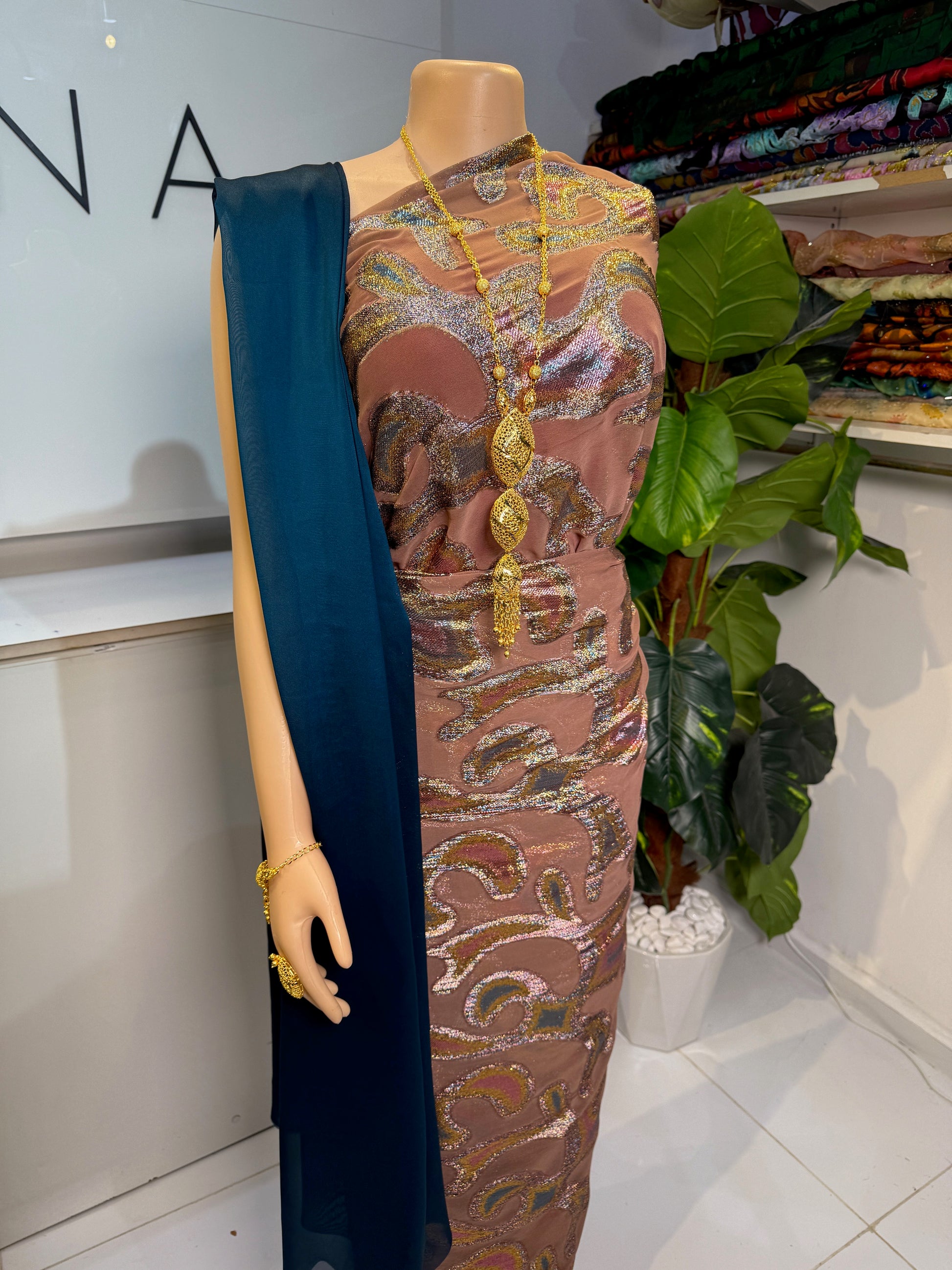 Our Nawaal Collection II features stunning, vibrant colors that are perfect for any occasion offering a radiant touch to your wardrobe. Each dirac can be styled in multiple ways and comes with a matching chiffon shawl (shalmad) and custom-made underskirt (gogarad) that complement its intricate details. Every piece is hand-designed with rhinestones and shimmer, adding the perfect sparkle and shine.